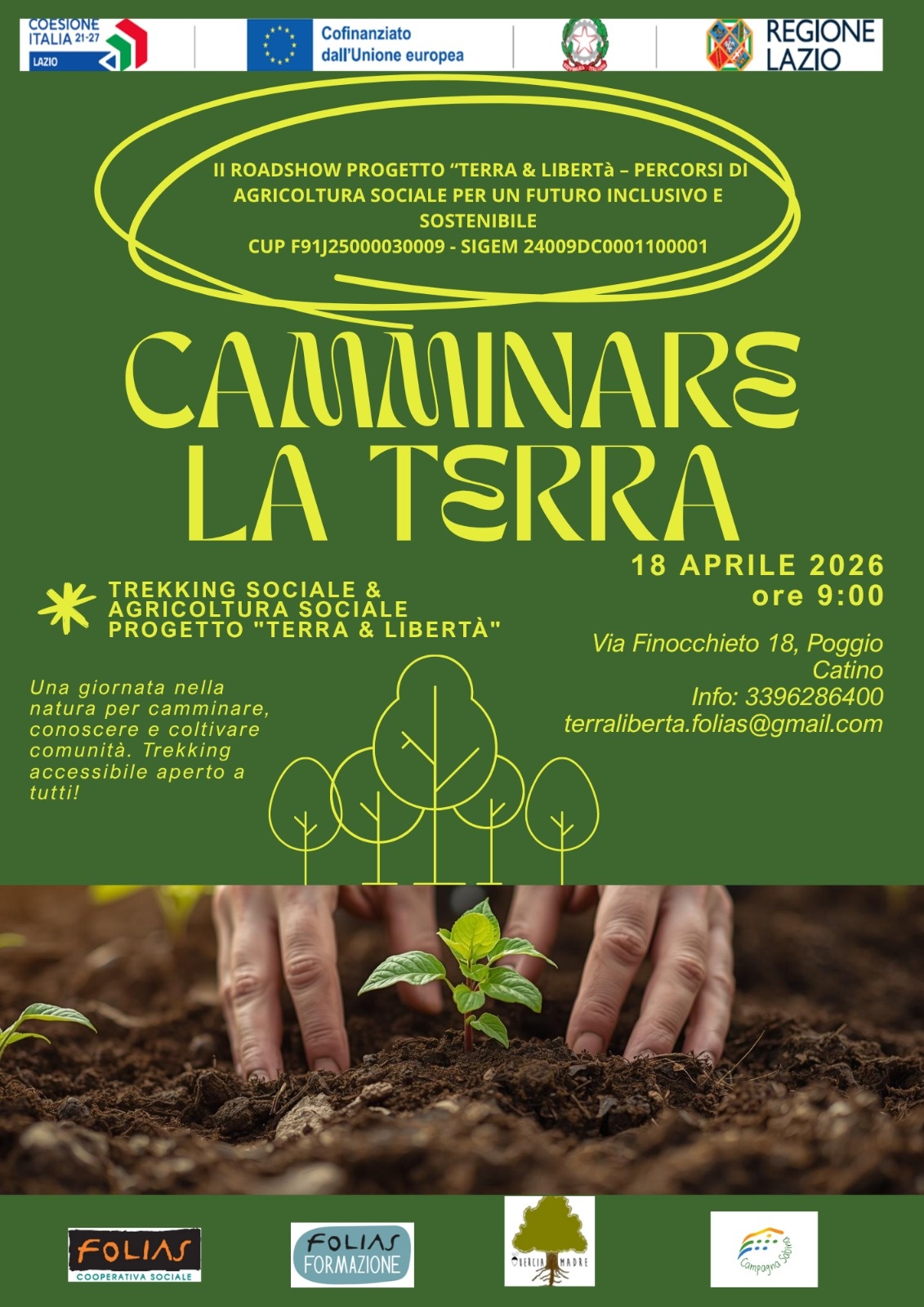 La Cooperativa Folias in collaborazione con Folias Formazione, lโazienda agricola Quercia Madre e Campagna Sabina รจ lieta di invitarvi a ๐๐ป๐ฎ ๐ด๐ถ๐ผ๐ฟ๐ป๐ฎ๐๐ฎ ๐ป๐ฒ๐น๐น๐ฎ ๐ป๐ฎ๐๐๐ฟ๐ฎ ๐ฝ๐ฒ๐ฟ ๐ฐ๐ฎ๐บ๐บ๐ถ๐ป๐ฎ๐ฟ๐ฒ, ๐ฐ๐ผ๐ป๐ผ๐๐ฐ๐ฒ๐ฟ๐ฒ ๐ฒ ๐ฐ๐ผ๐น๐๐ถ๐๐ฎ๐ฟ๐ฒ ๐ฐ๐ผ๐บ๐๐ป๐ถ๐๐ฎฬ.